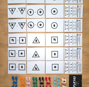Chicatana Pocket es un juego de reacción rápida para todas las edades en donde el objetivo es ser el primer jugador en encontrar la combinación de colores y figuras antes que cualquier otro.